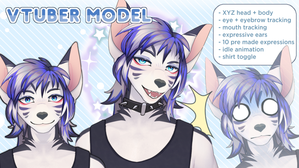 Premade Live2D Furry VTuber Model (Wolf/ Dog), Art + Rigging